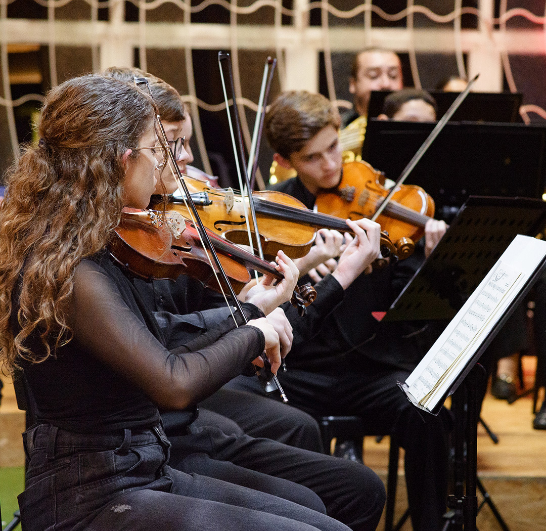O impacto do projeto na vida dos alunos começa já no primeiro contato com a música orquestral, revelando-se em um processo de transformação profunda, tanto artística quanto pessoal. Na etapa inicial, por meio da musicalização, os estudantes desenvolvem sua sensibilidade de forma lúdica e envolvente, com atividades que integram canto, movimento corporal, percepção rítmica e noções de tempo musical. Essa fase é enriquecida por um repertório que dialoga com o universo cultural dos alunos, promovendo identificação, pertencimento e despertando o interesse genuíno pela música. Mais do que ensinar técnicas, este momento abre portas para o autoconhecimento, abordagem instrutiva que valoriza o ser humano em sua totalidade, através da formação humanista.