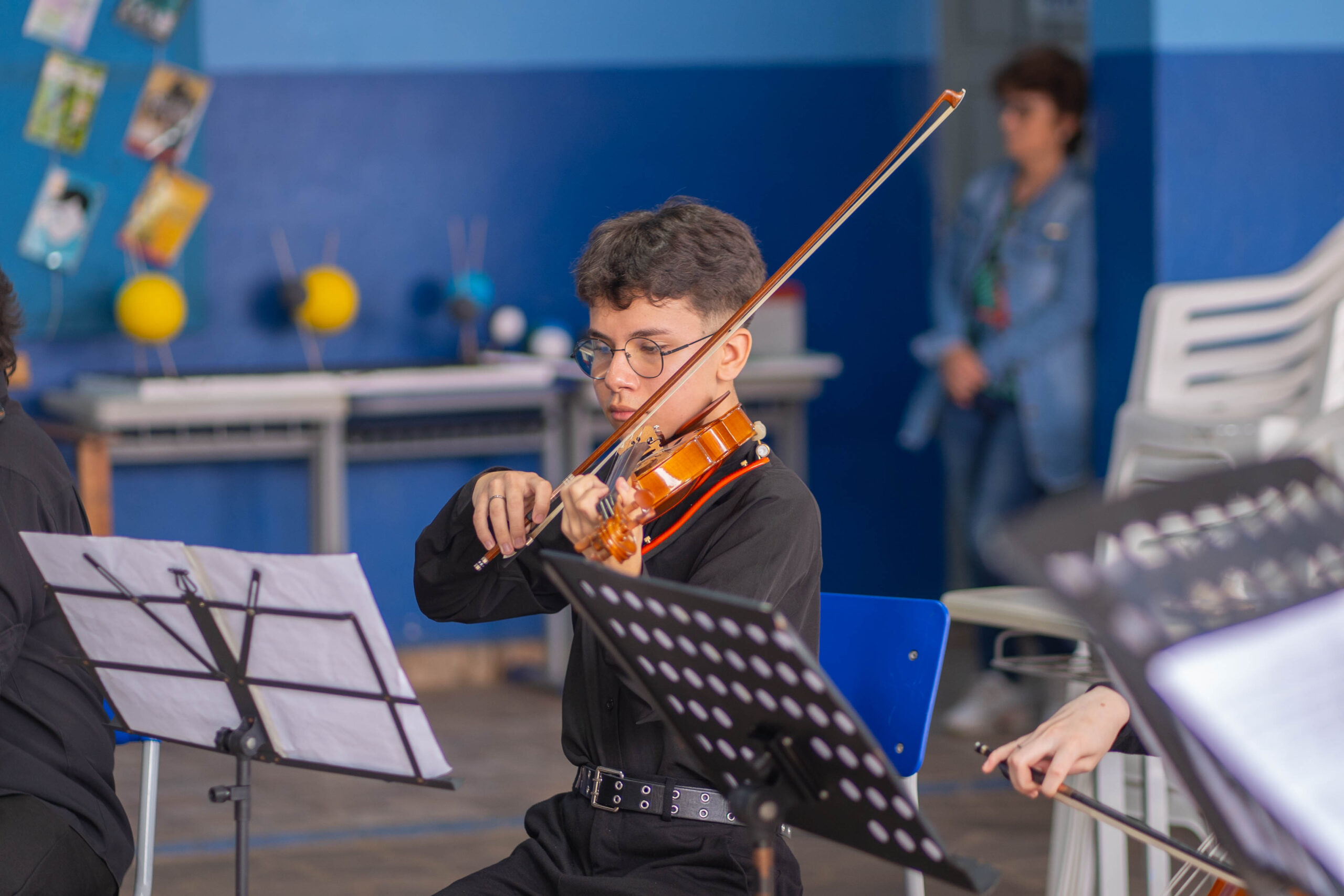Entre as ações realizadas em parceria, destaca-se a participação da Orquestra nas atividades da Fundação, como o espetáculo “Chapeuzinho Amarelo”, a presença em eventos promovidos pela Faculdade Antonio Meneghetti e o envolvimento em iniciativas dos cursos de Graduação e MBA, incluindo recitais e práticas integradas à formação. Em novembro, a OJRM participou da programação do encerramento do Edital Formar da Fundação, reforçando o compromisso com ações de impacto cultural e social. No início de Dezembro, houve mais uma atividade vinculada ao curso Bacharelado de Ontopsicologia- Tocada com As Mãos – Evento cultural e educacional do 5⁰ Edital Formar para Transformar, demonstrando a integração contínua da música ao ambiente acadêmico.