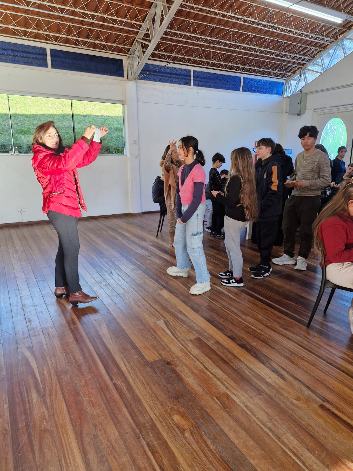 No encontro com os alunos da OJRM, a professora Mami Ueno, acompanhada da convidada Bernardina Amantino, conduziu uma atividade que abordou os comportamentos relacionados ao desenvolvimento da autonomia. A explanação destacou a importância de investir nas habilidades aplicáveis no cotidiano. Através de atividades práticas, os alunos aprenderam a costurar suas próprias roupas e realizaram um training de elegância na postura ao caminhar, tão importante ao subir no palco. Através das atitudes aparentemente pequenas – do miricismo cotidiano – permitimos transformar os jovens para desenvolver uma maior responsabilidade, autonomia e a elegância de ser para toda a vida.
