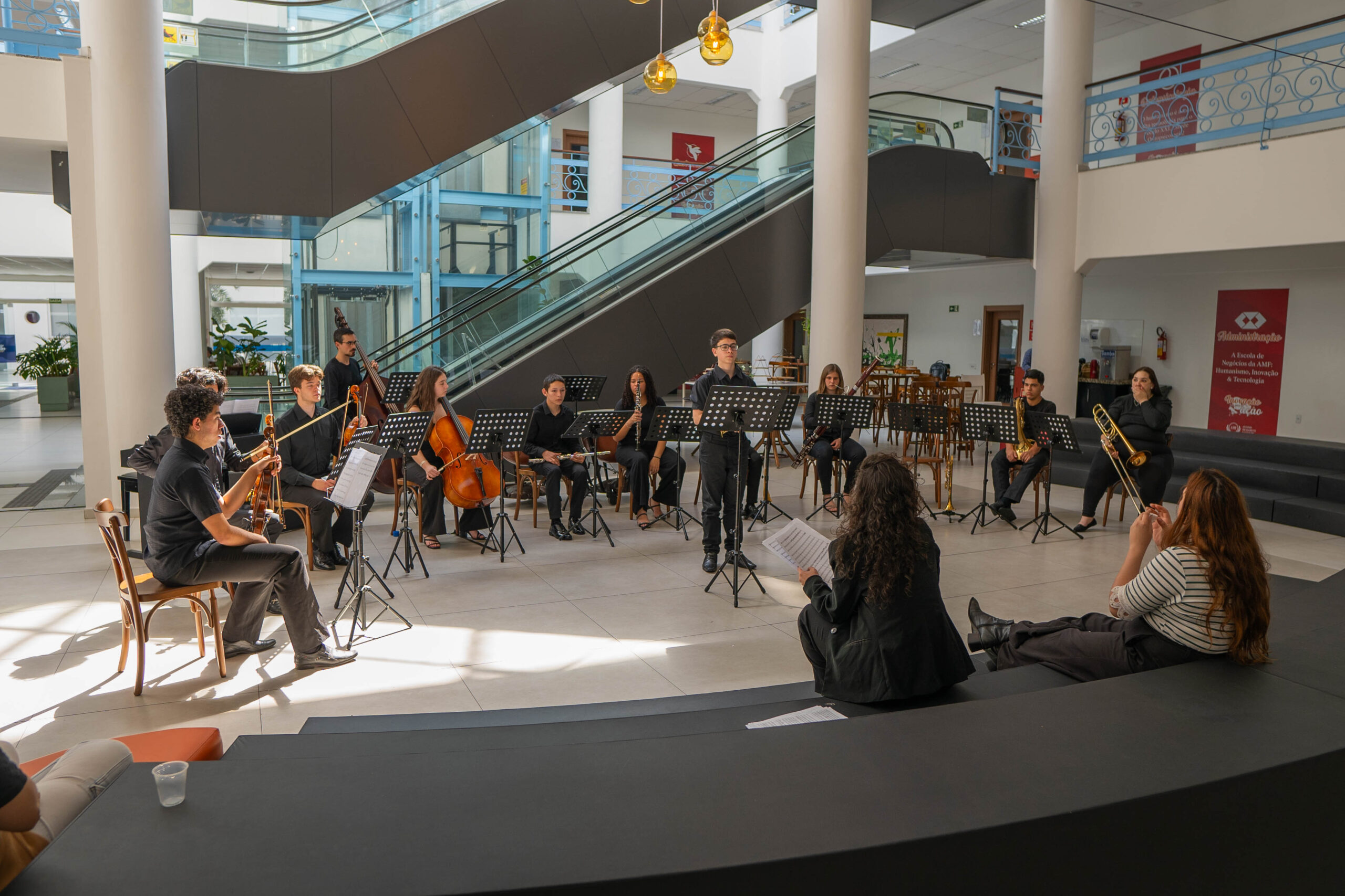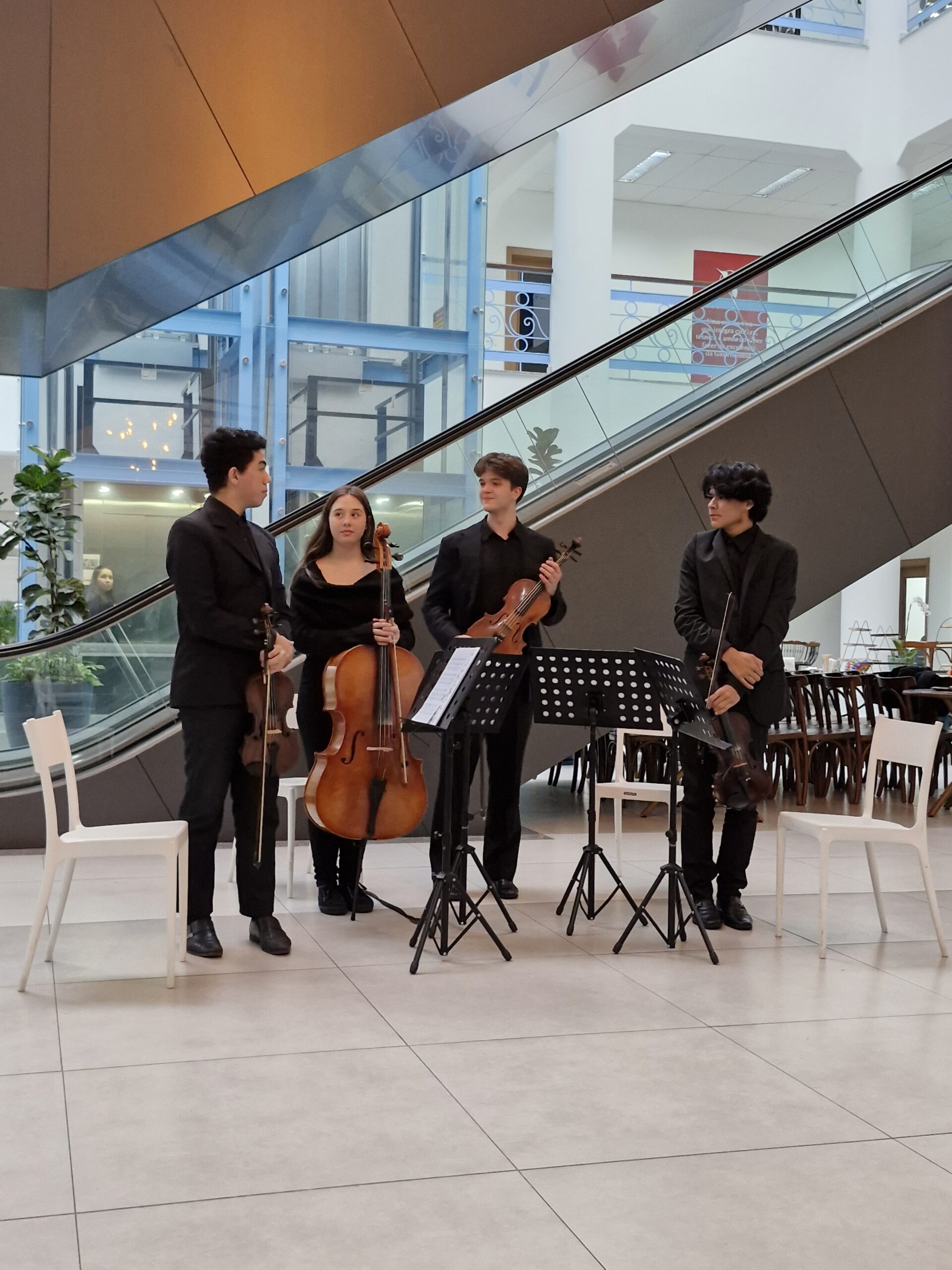 No mês de outubro, o destaque foi a apresentação do quarteto de cordas, realizada no Hall 3 da AMF. O grupo encantou o público com interpretações que criaram um ambiente de contemplação e inspiração, aproximando a comunidade acadêmica do universo da música erudita.